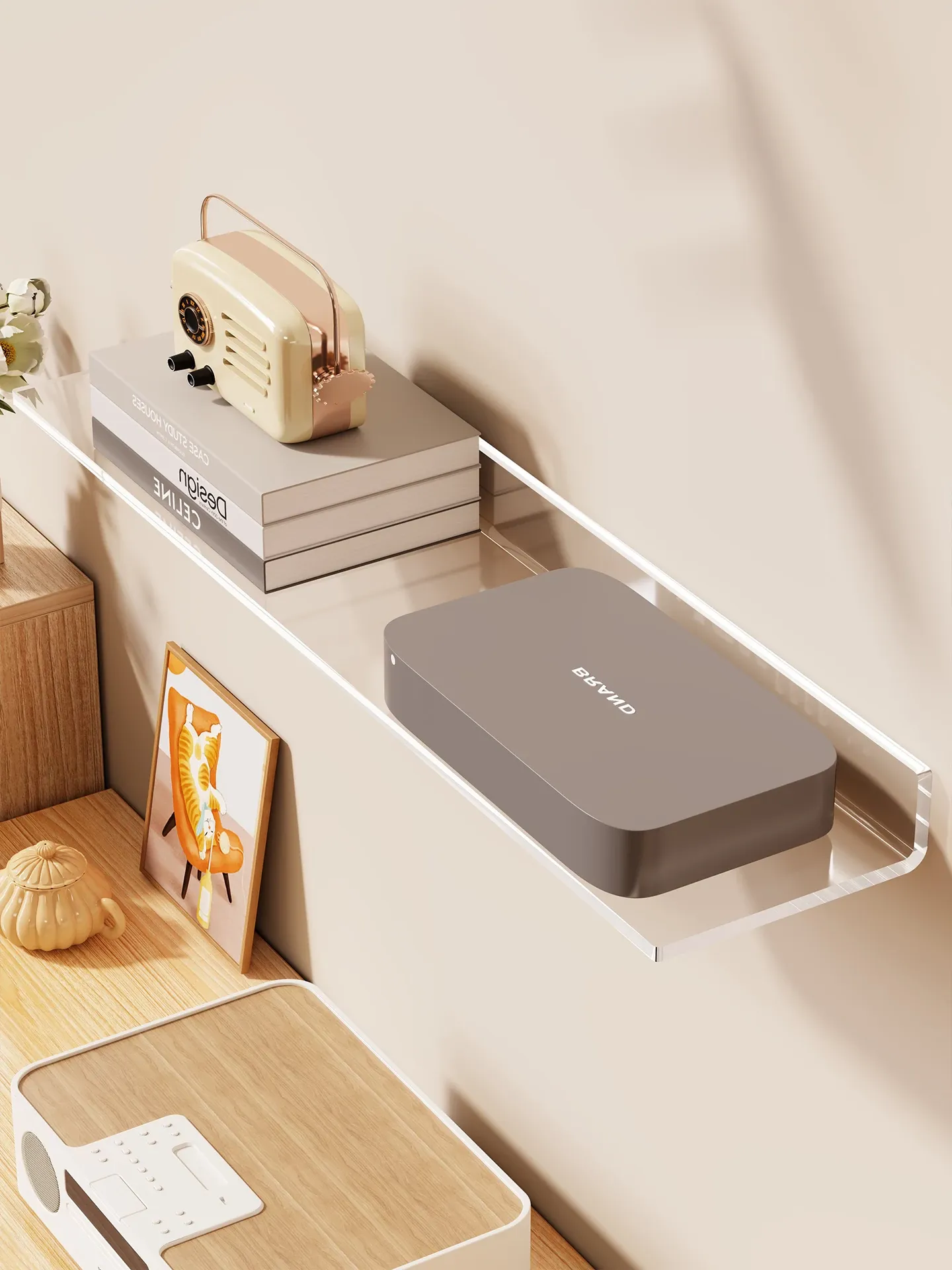 穴あけ不要!カメラスタンド壁掛け収納ラック - テレビボックスやルーターを室内外でしっかりサポート!清潔感のあるスタイリッシュなデザインで、監視カメラも安全に設置できます。