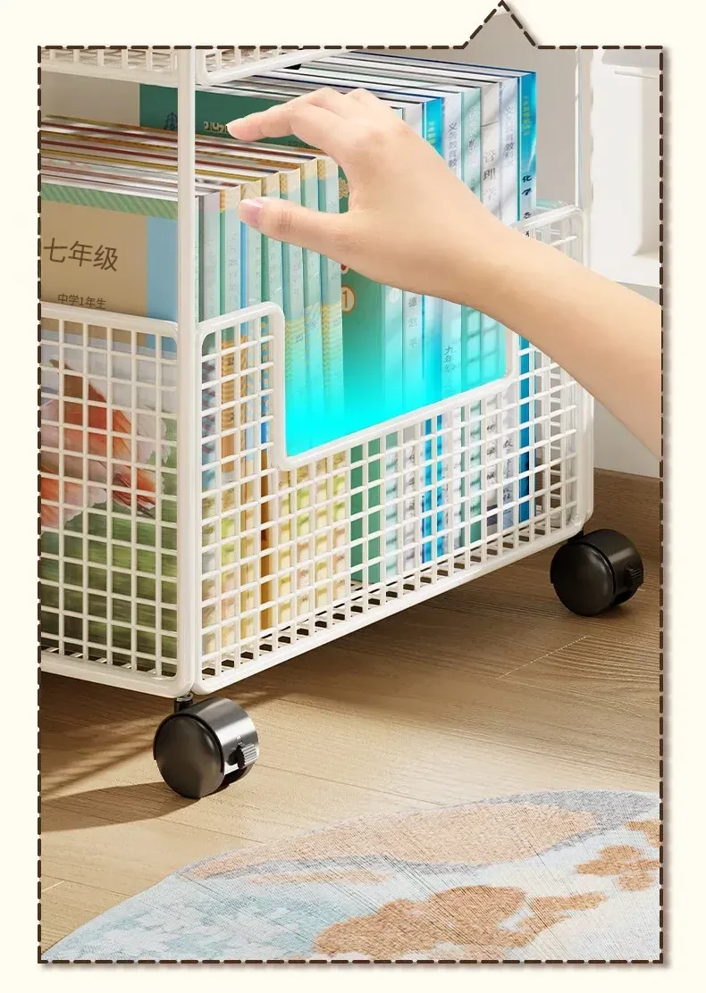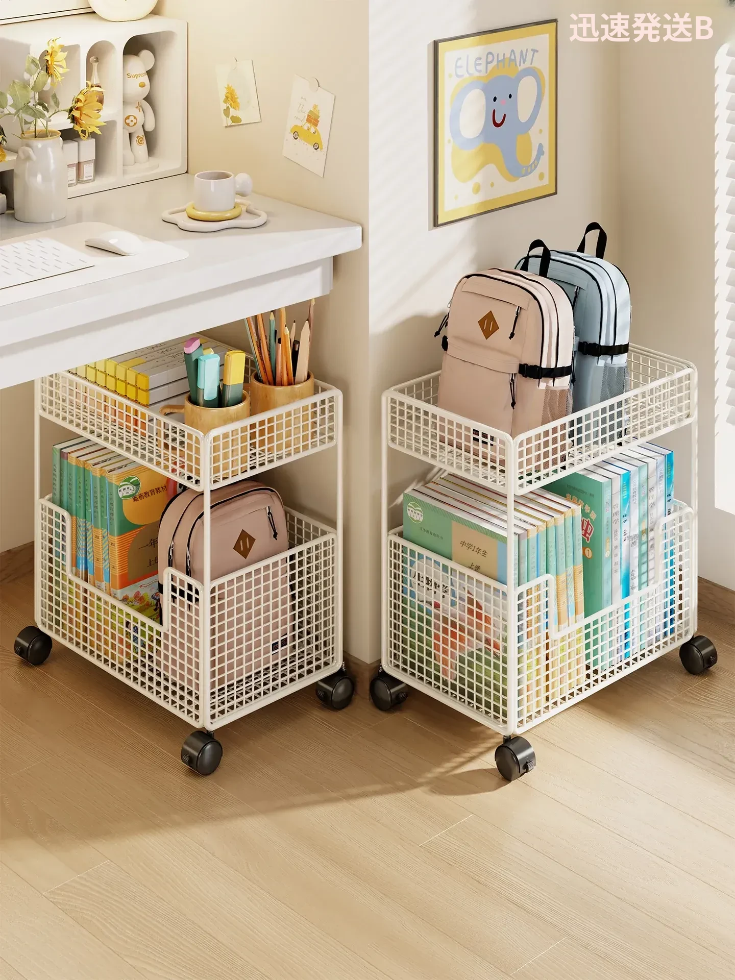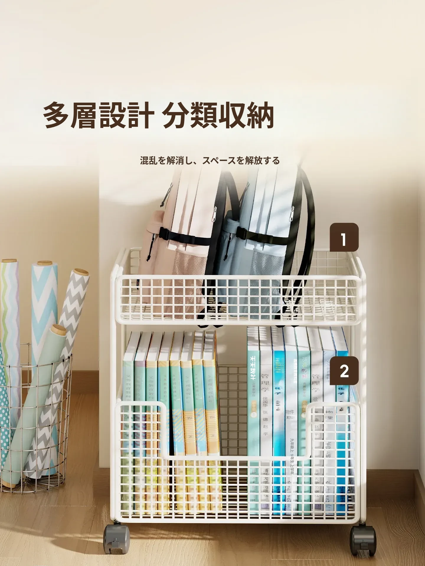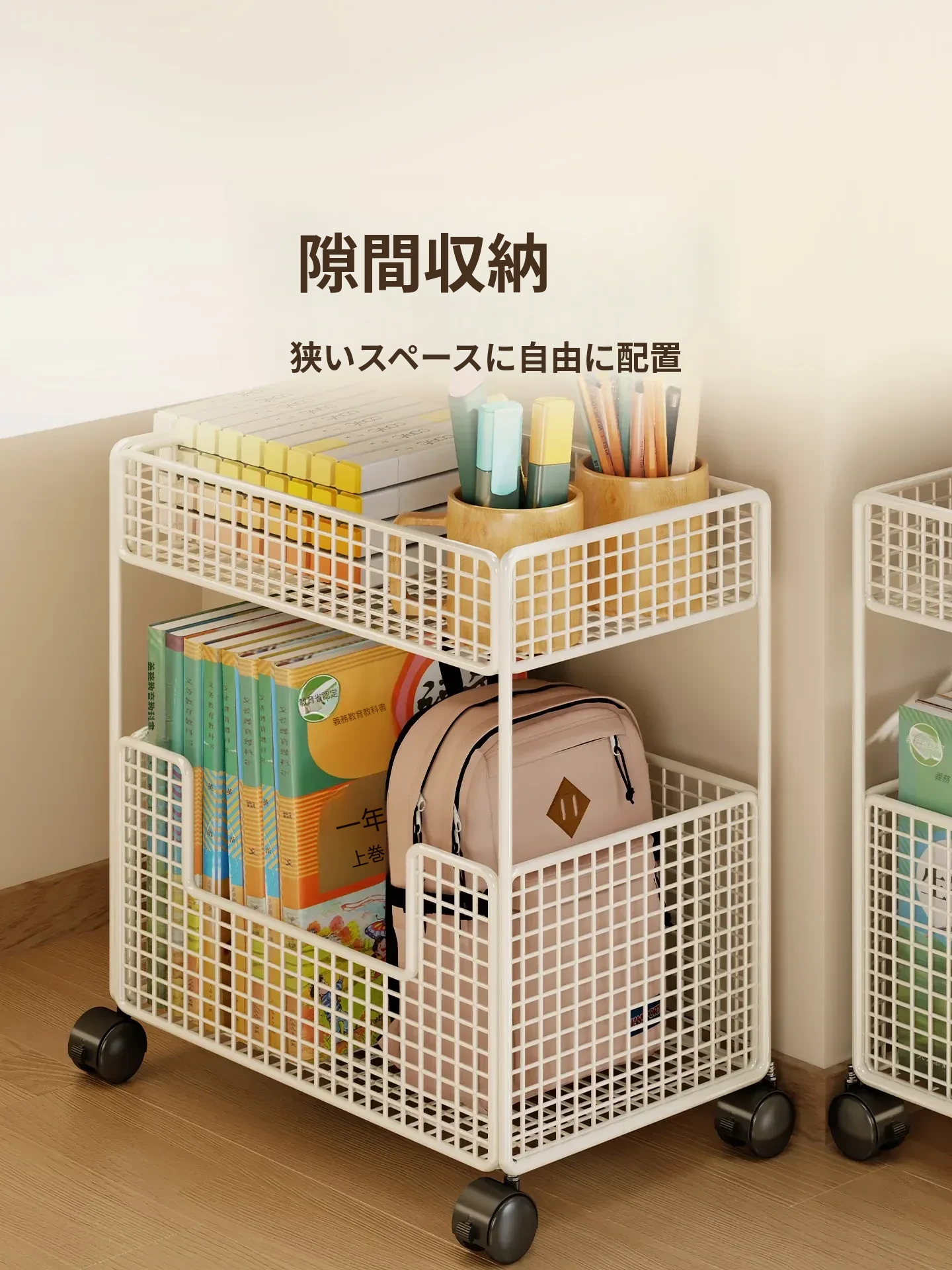 可移动書籍収納ラック - 家庭用の書類やリュックをスッキリ整理!デスク下にぴったり収まるキャスター付きの便利な収納カートです。