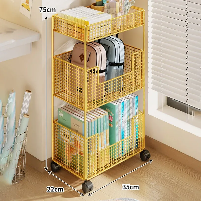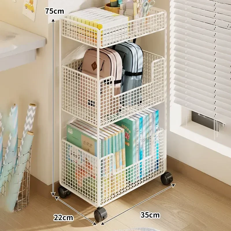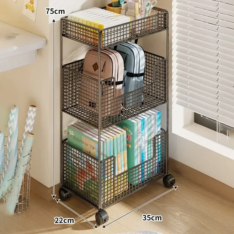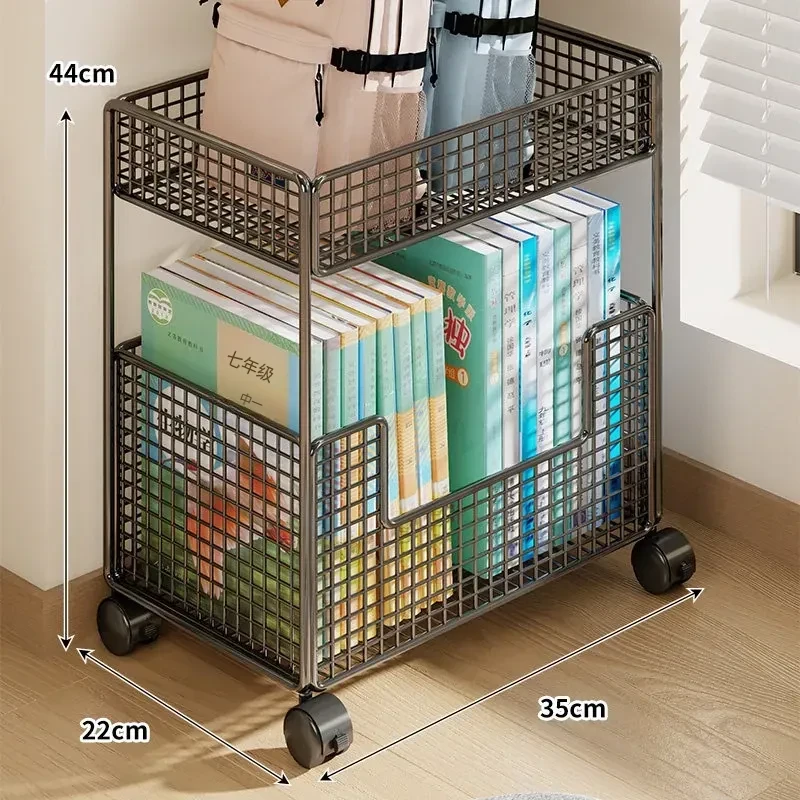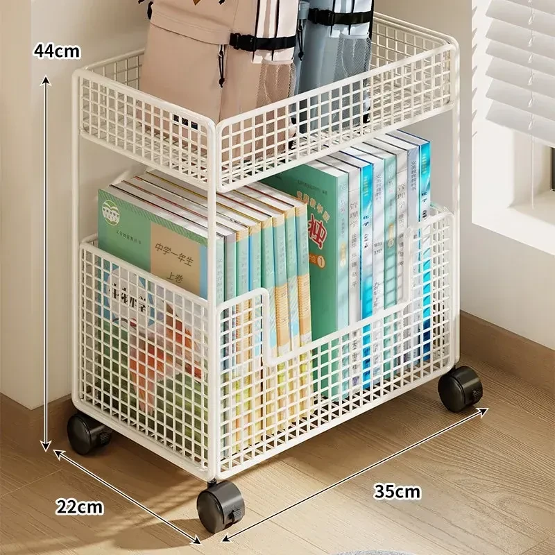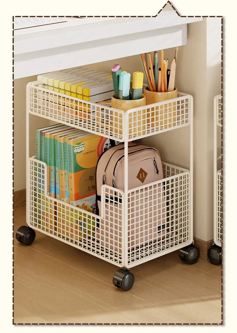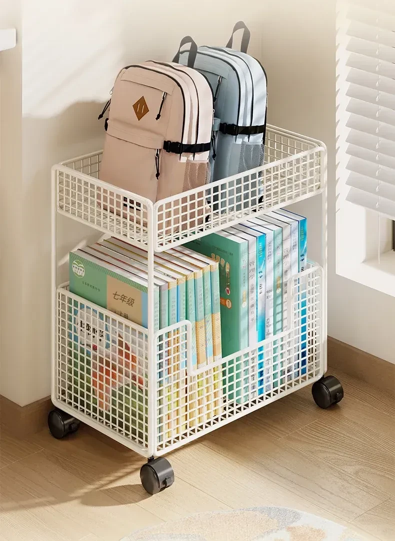 可移动書籍収納ラック - 家庭用の書類やリュックをスッキリ整理!デスク下にぴったり収まるキャスター付きの便利な収納カートです。