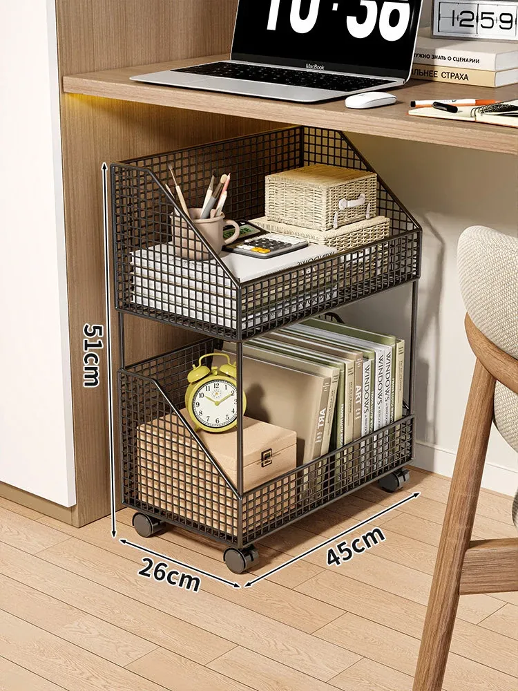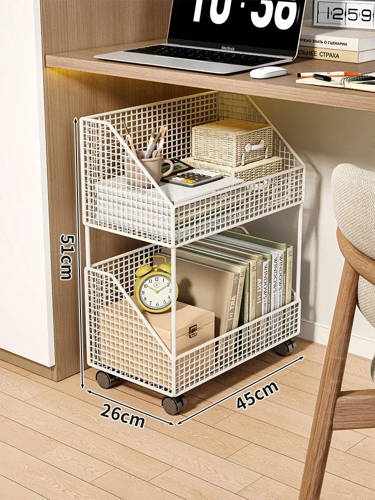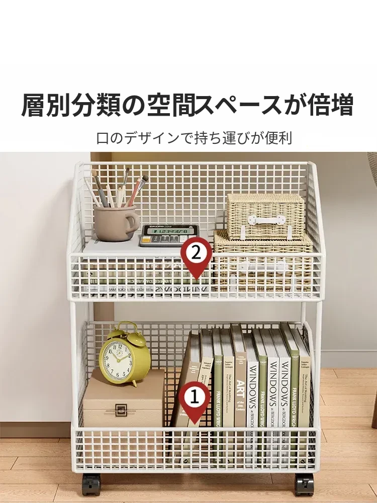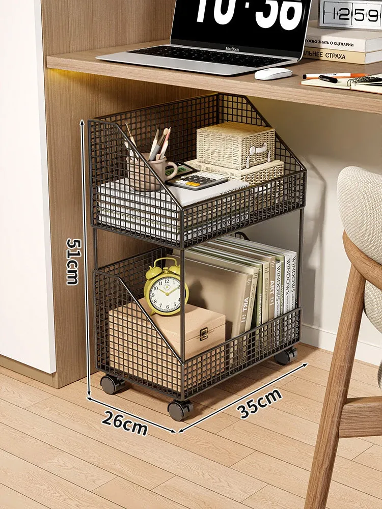 移動式書架&収納カート!家庭やオフィスにぴったりの多層収納ボックス。書類整理や小物収納に最適な便利アイテム!快適な作業空間を実現します。