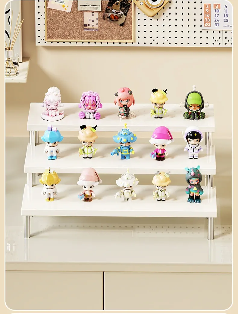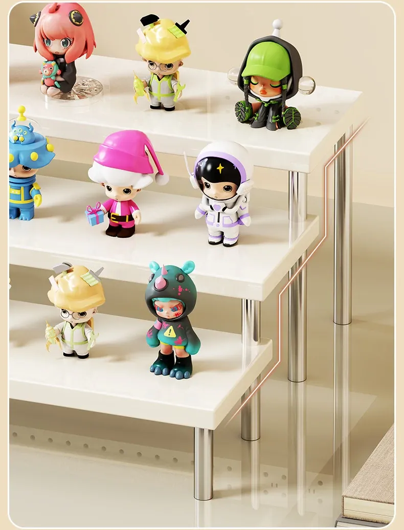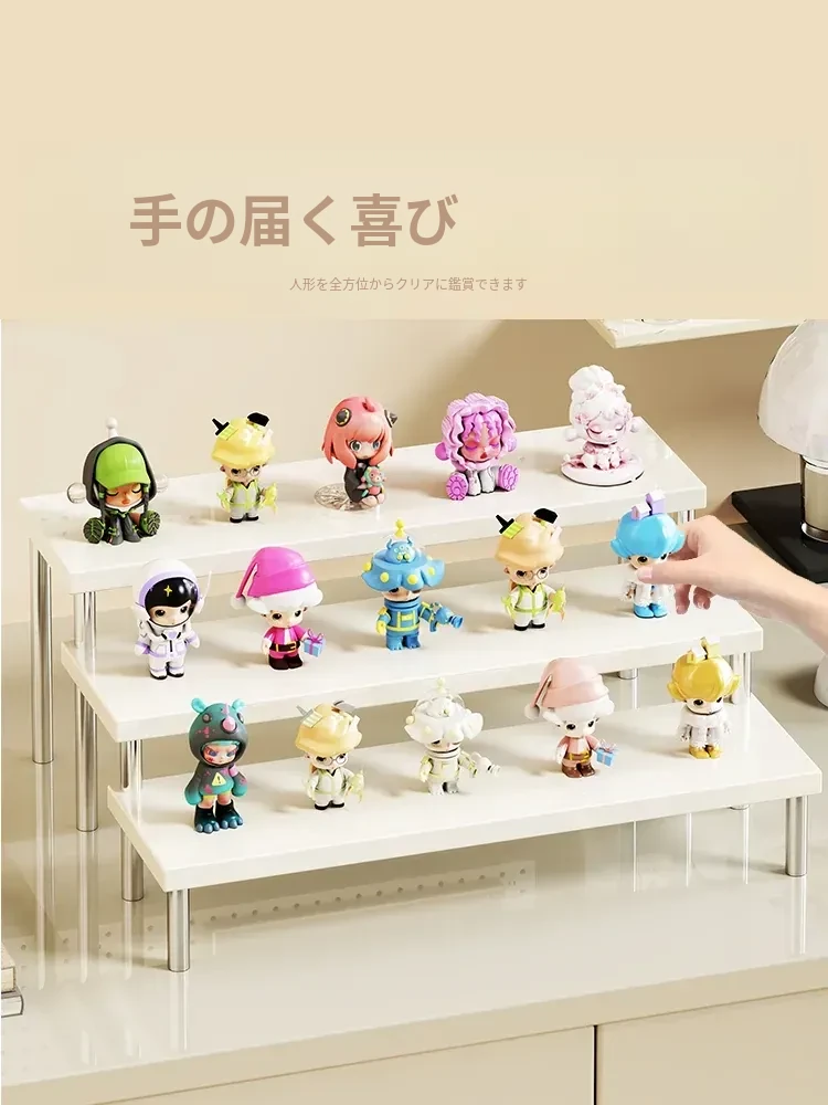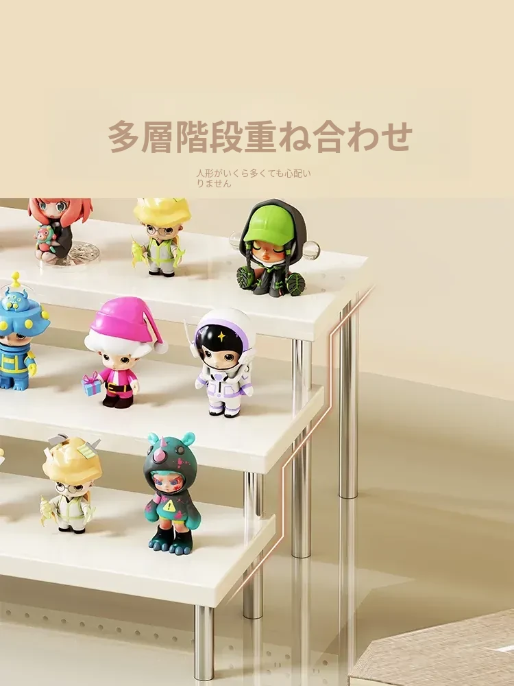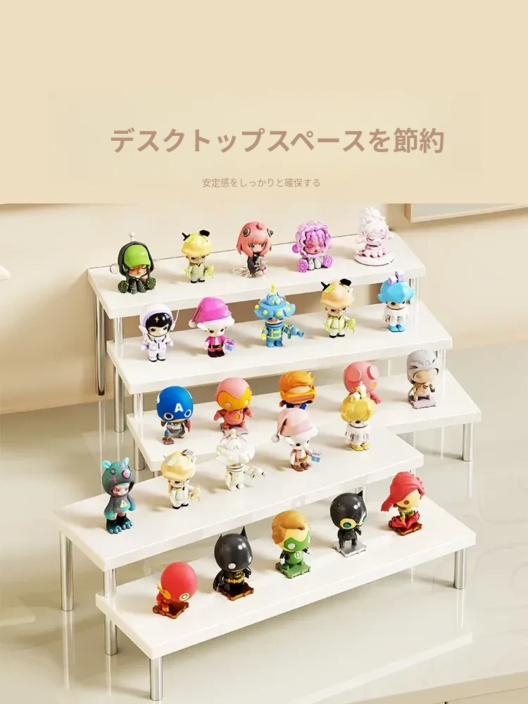 フィギュア収納ディスプレイスタンド - ブラインドボックス愛好者必見!階層式の棚でお好きなフィギュアを美しく展示。おしゃれなインテリアにもぴったりな収納ラックです。あなたのコレクションを魅力的に演出しましょう!