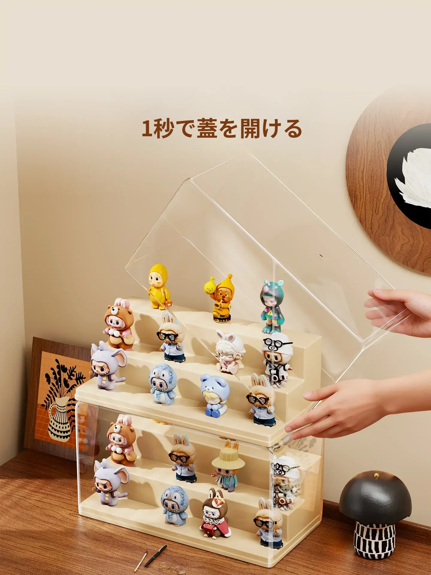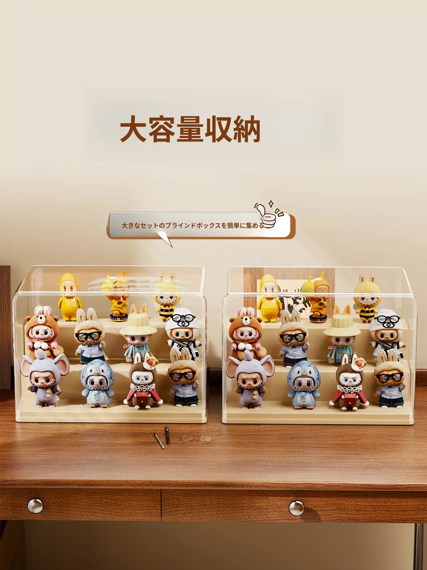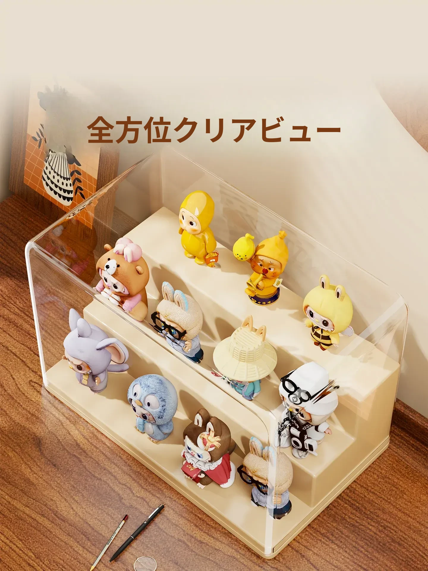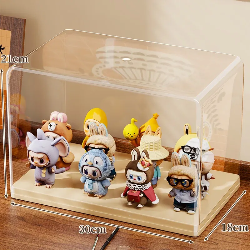 ブラインドボックス収納ケース 透明フィギュアディスプレイキャビネット ポップマート防塵収納棚 ステップ式かわいいコレクションラックで、大切なフィギュアを美しく展示!整理整頓も簡単に!