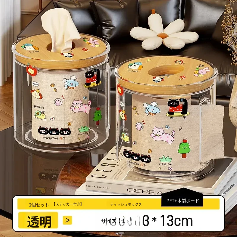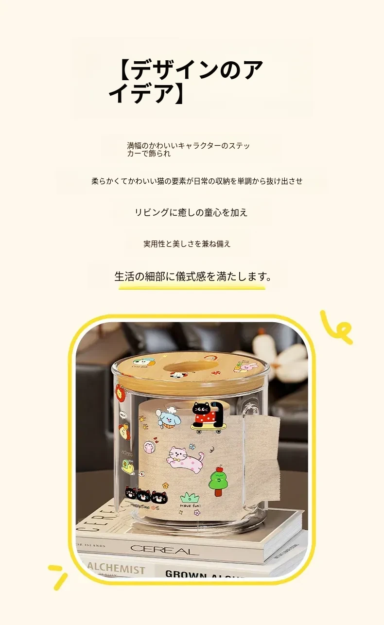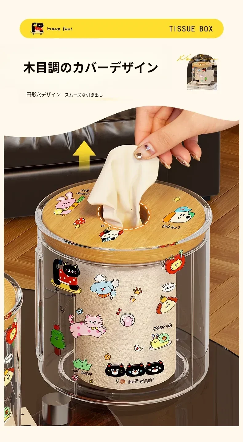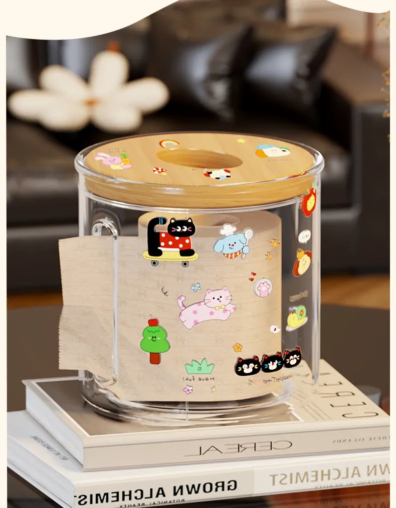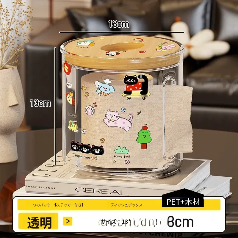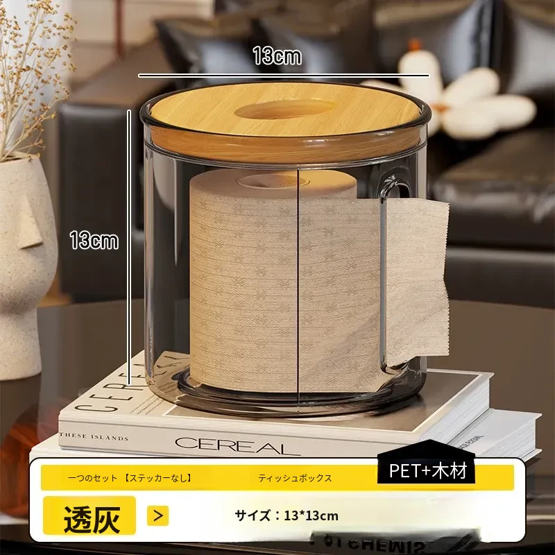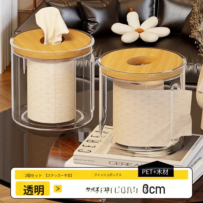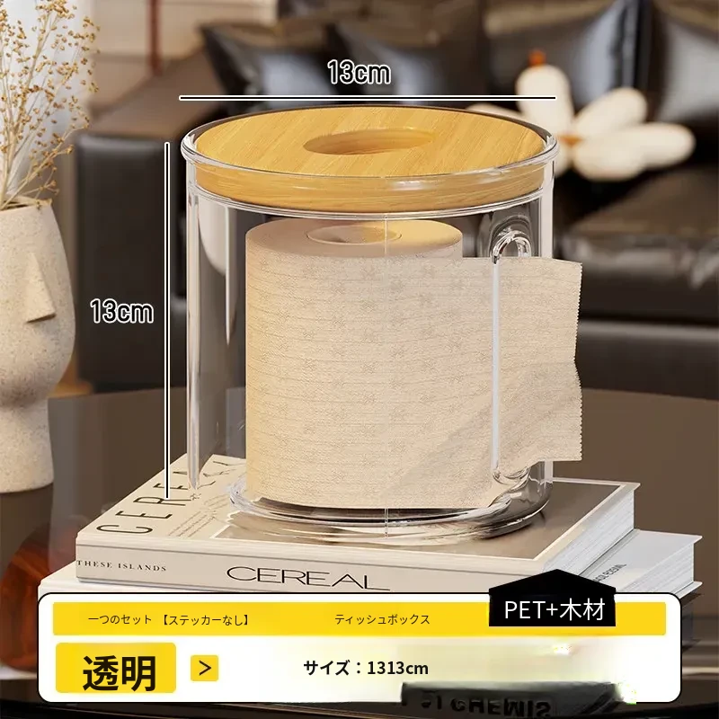 透明デザインの家庭用ティッシュボックス - おしゃれな円形ロールティッシュホルダー、リビングやダイニングテーブルに最適!整理整頓に役立つ衛生的な収納ボックス。