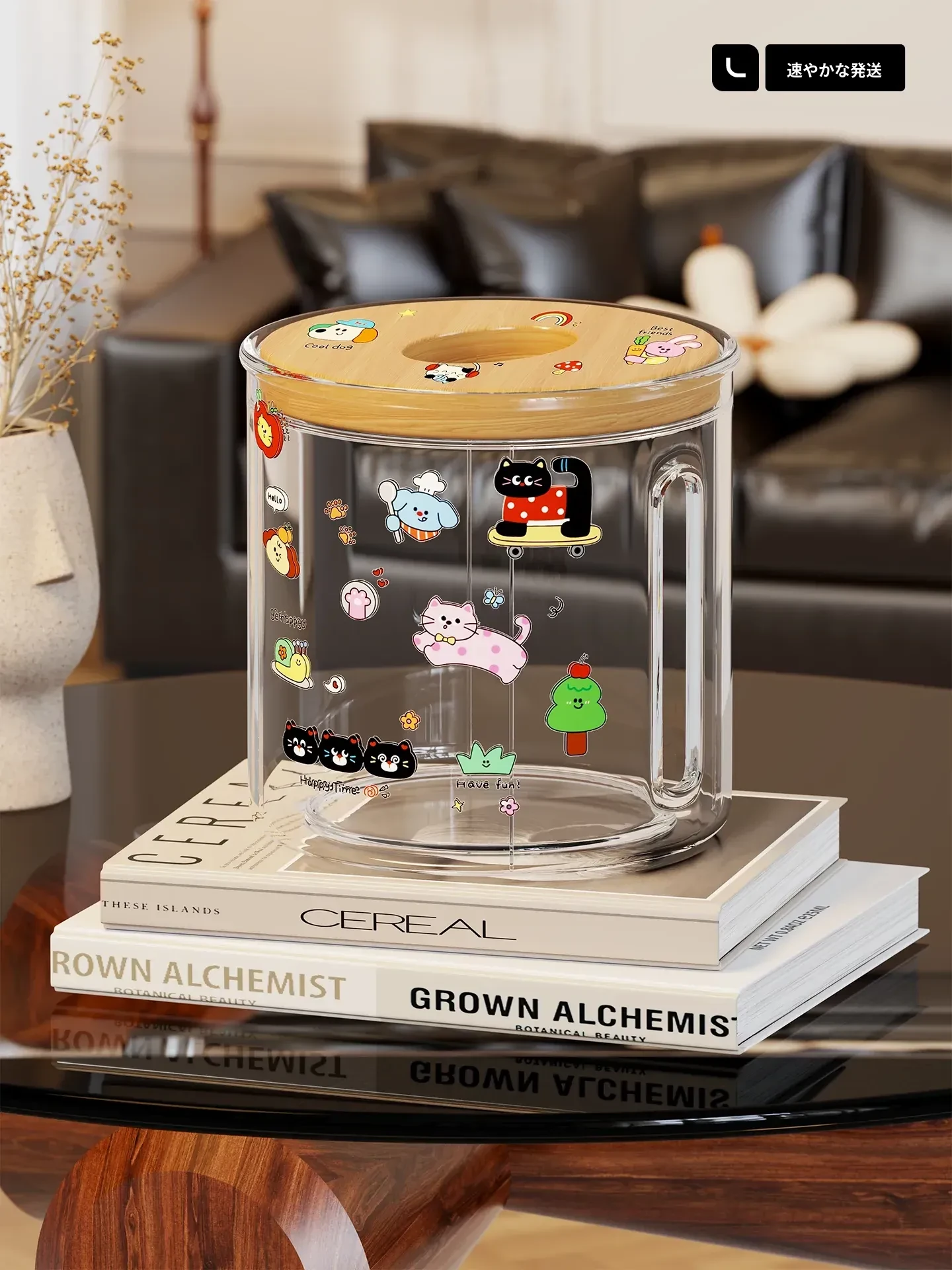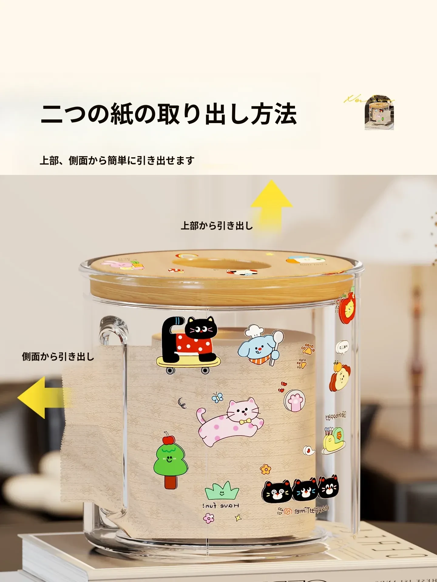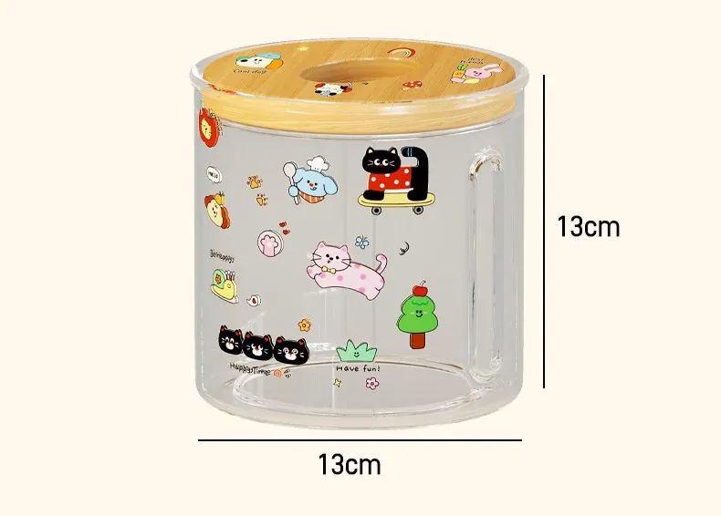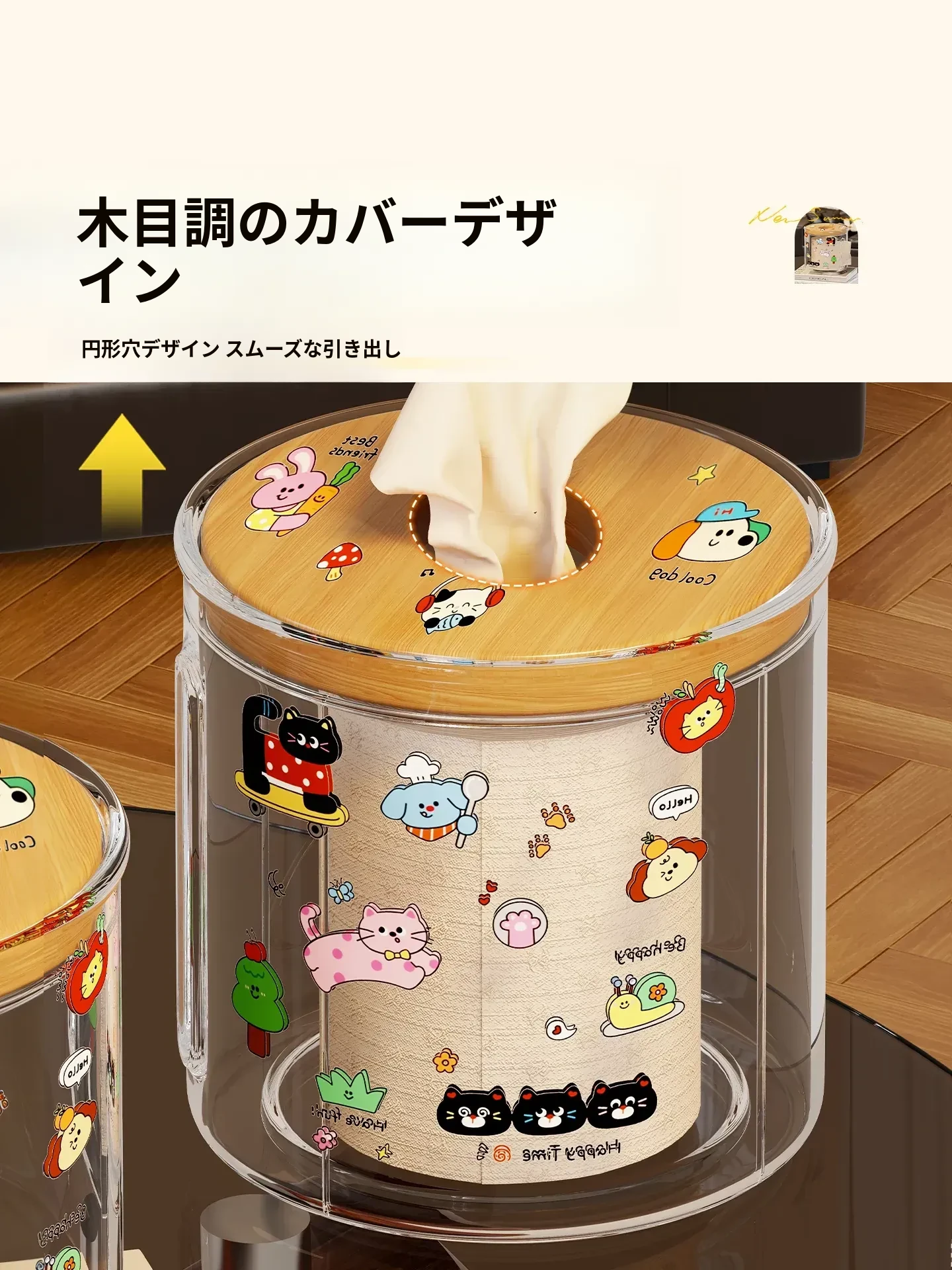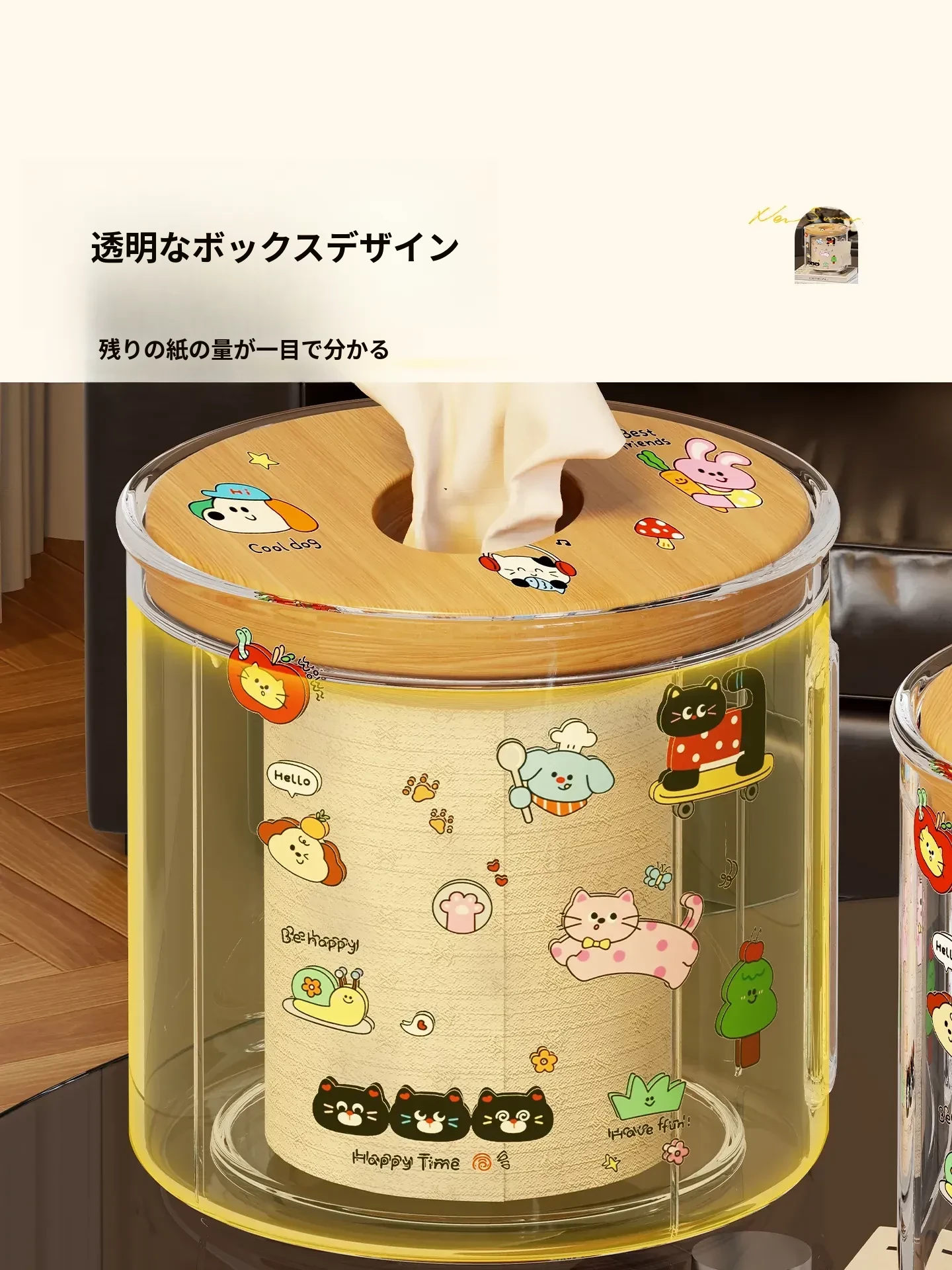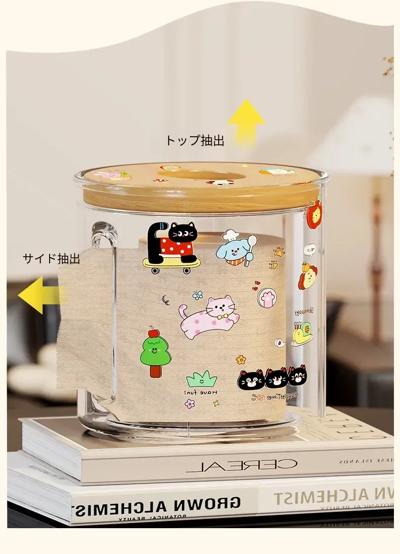 透明デザインの家庭用ティッシュボックス - おしゃれな円形ロールティッシュホルダー、リビングやダイニングテーブルに最適!整理整頓に役立つ衛生的な収納ボックス。