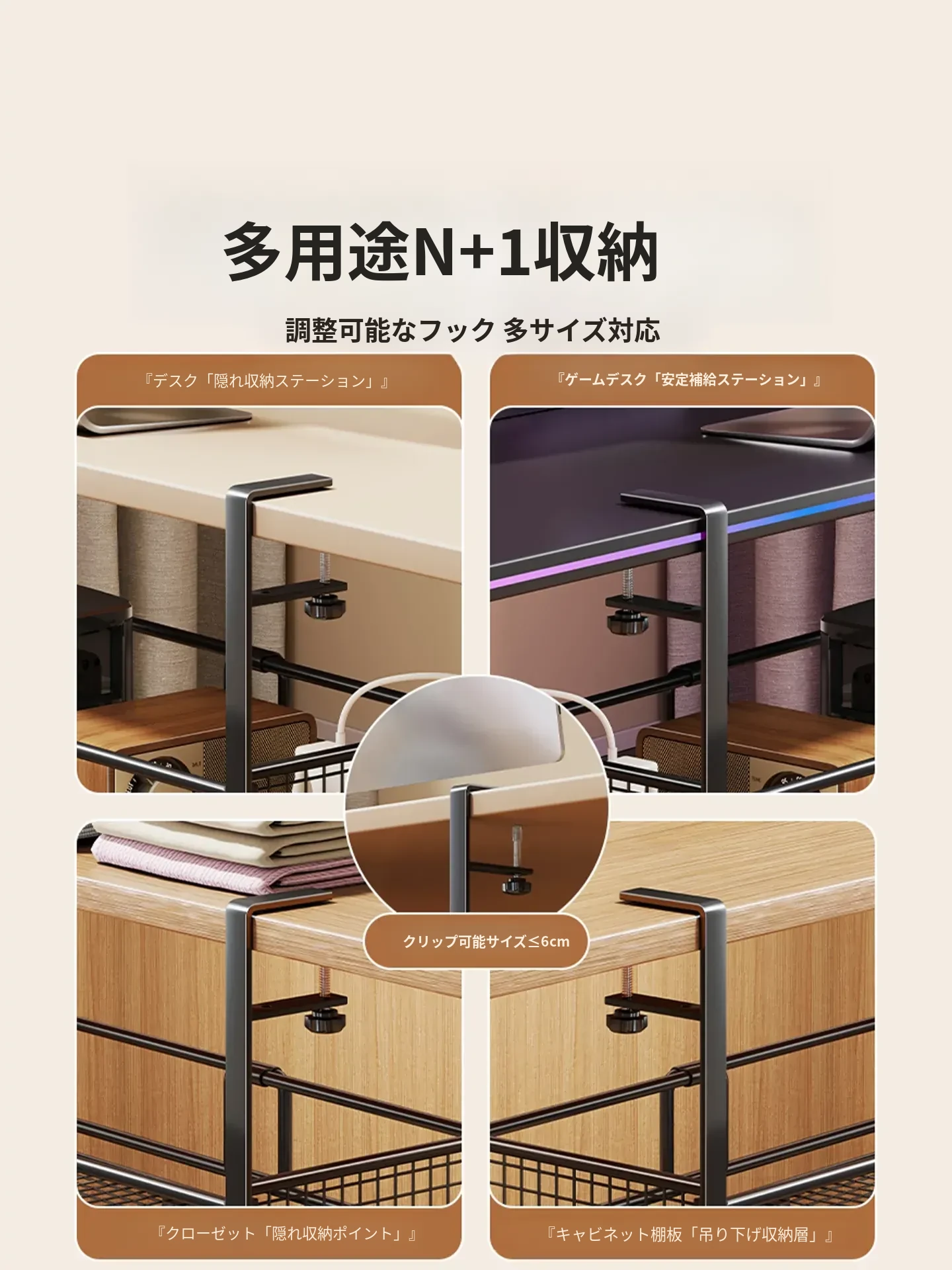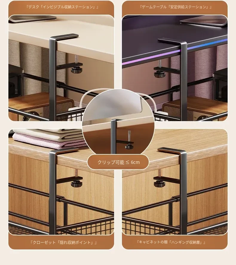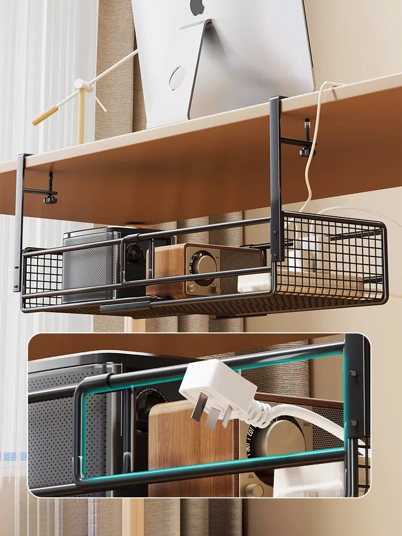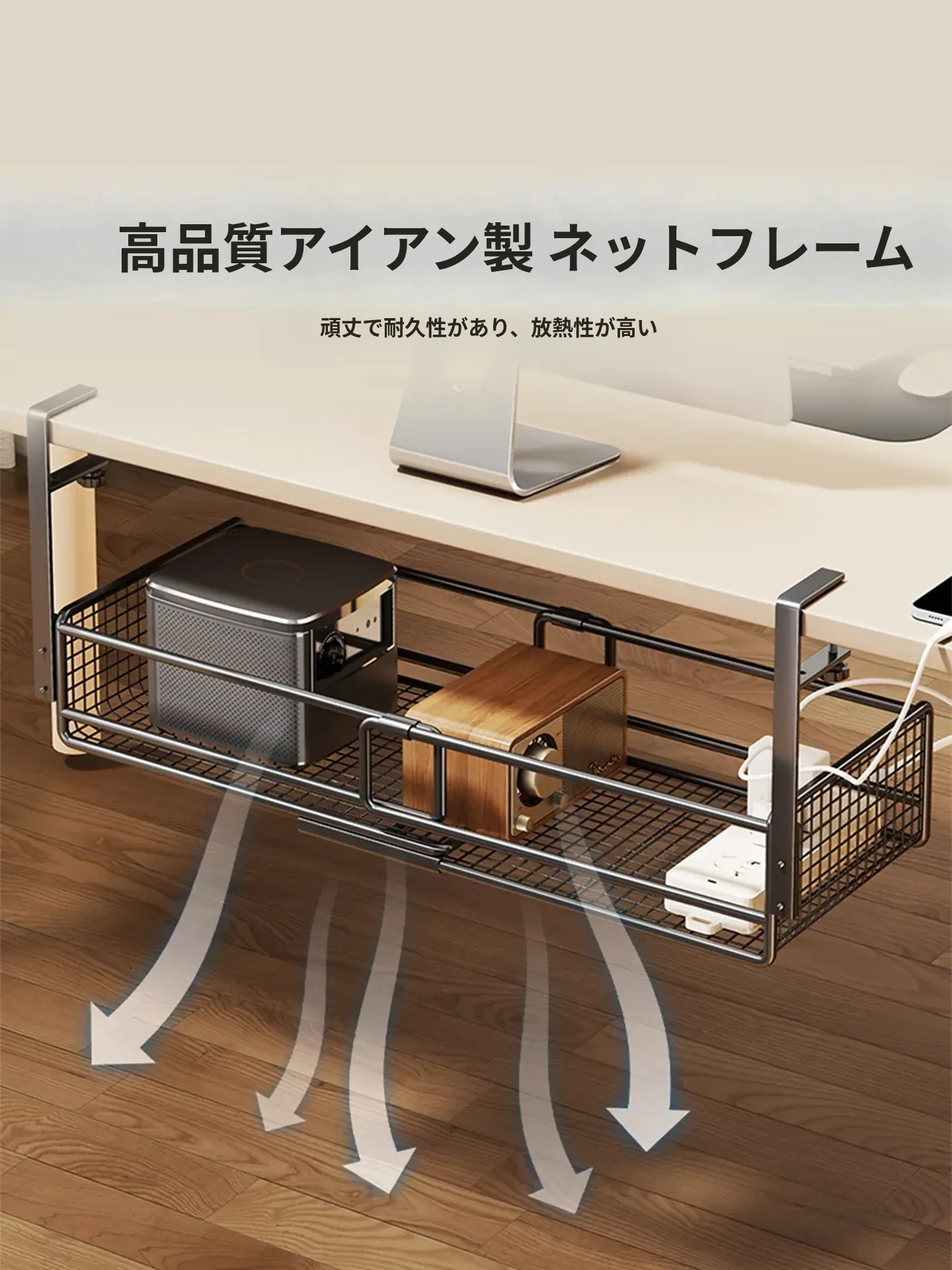 デスク下収納ラック・ケーブル整理器!パソコンデスク下のルーター収納ボックス、データケーブル用ハンギングバスケットでスッキリ整理。あなたのデスク周りを美しく保つ必須アイテム!