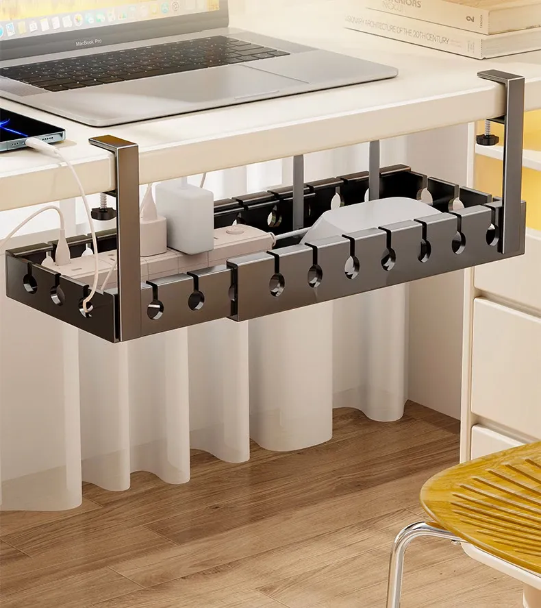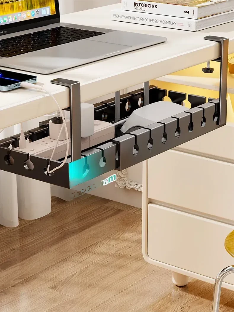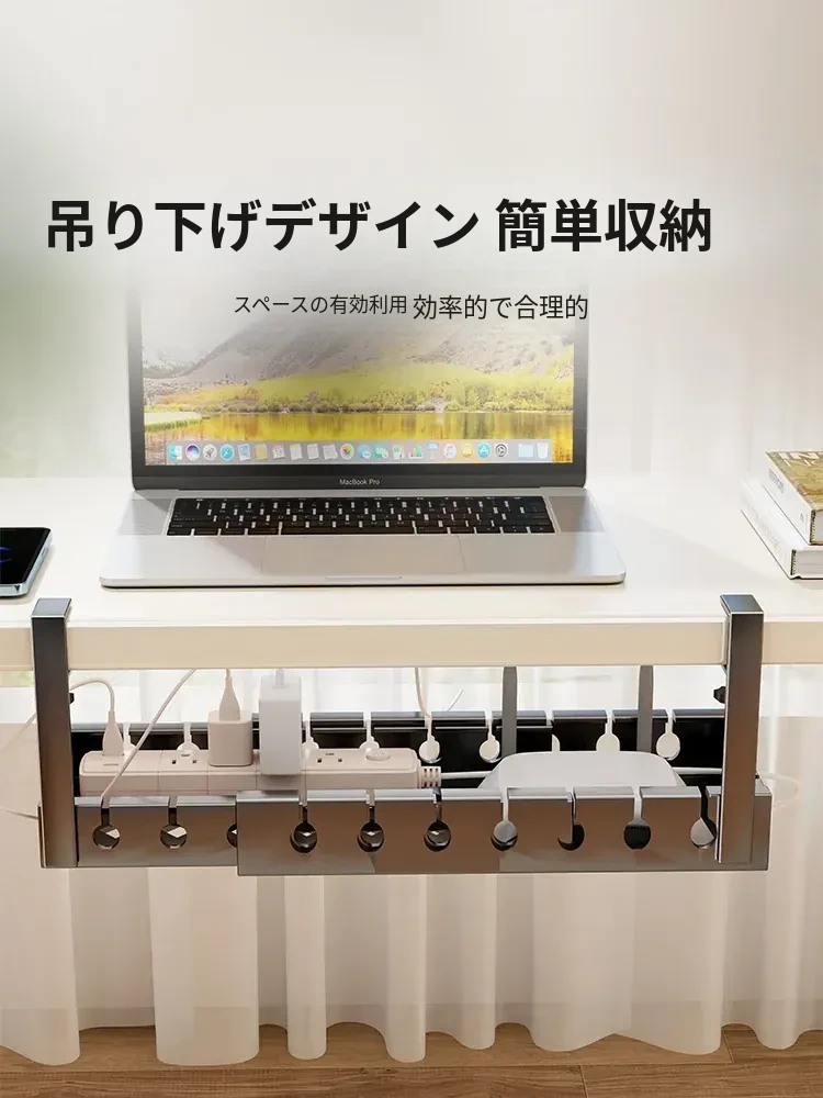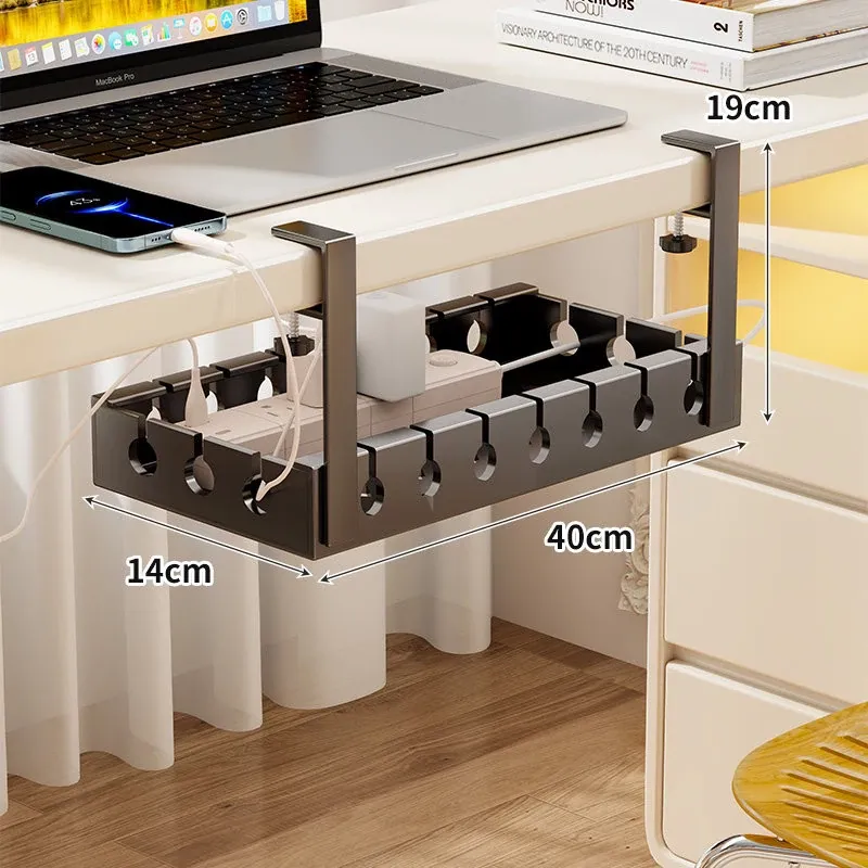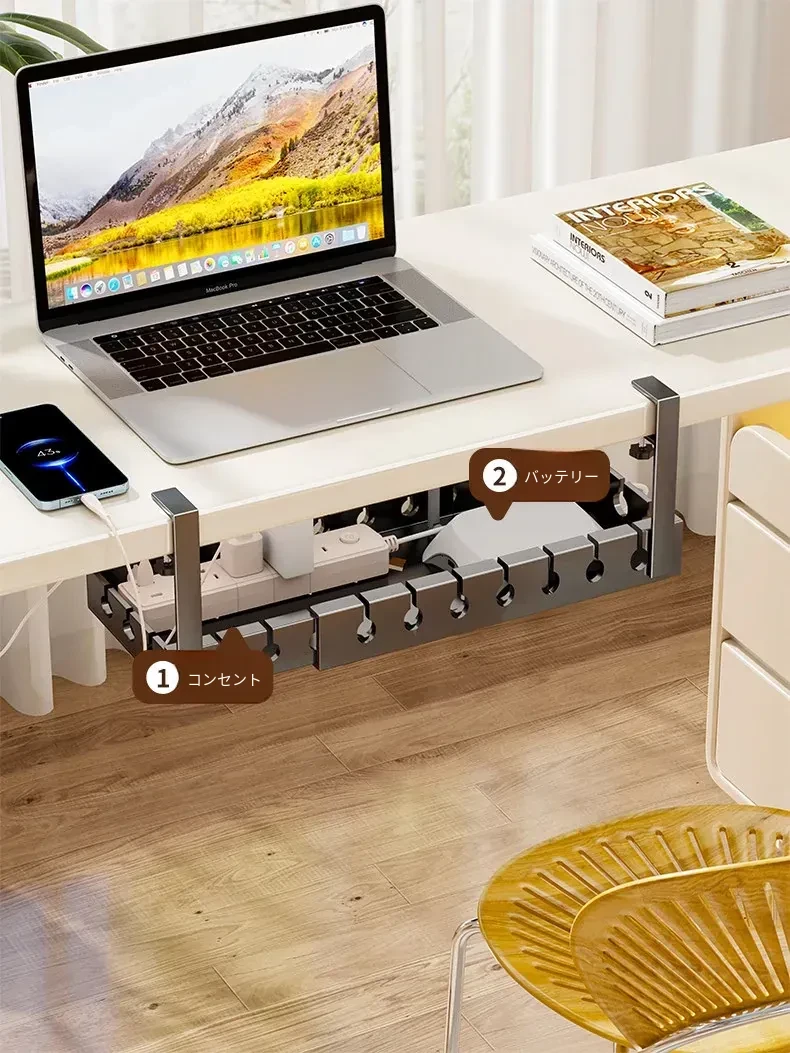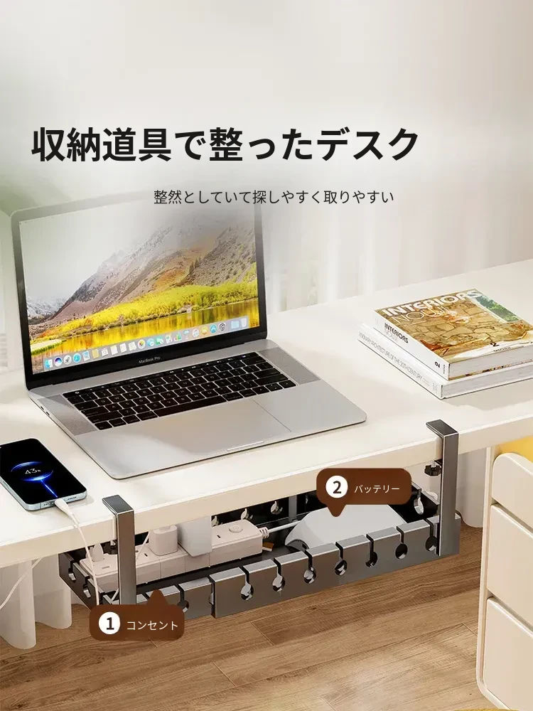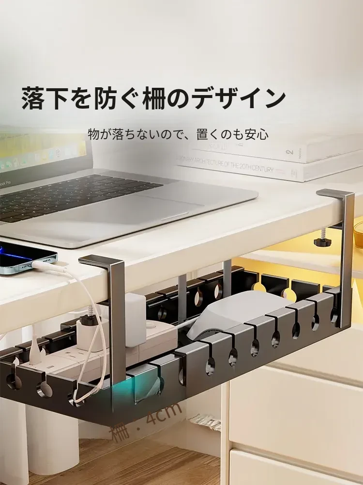 デスク下ケーブル整理器 - 穴あけ不要で簡単取り付け!デスク周りをスッキリさせる電線整理の必需品。ルーターをすっきりと固定できる便利なケーブルホルダーです。