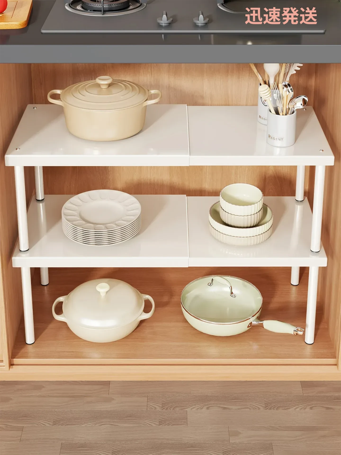 キッチン多機能収納ラック - 鍋や調味料瓶をすっきり整理!空間を有効活用できる分層収納で、家事をもっと楽に。おしゃれで実用的なアイテムで、あなたのキッチンを美しく整えましょう!