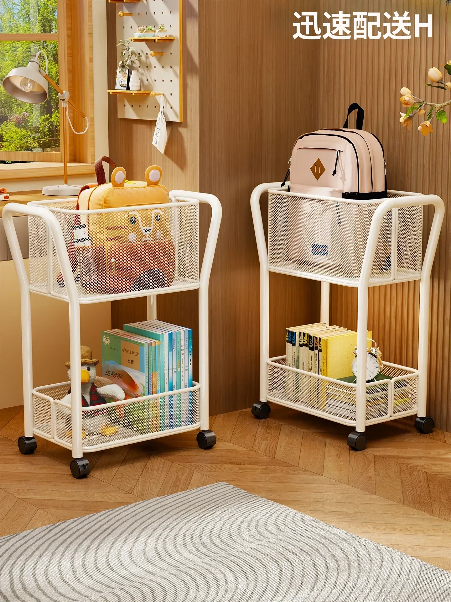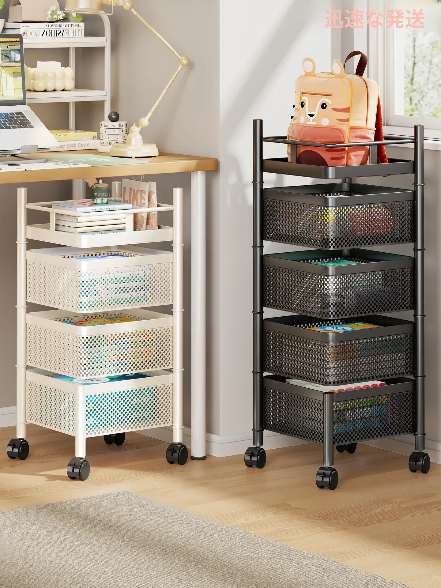 学生宿舎や教室に最適!書籍や文房具をすっきり整理できる多層収納の移動式ブックシェルフ。デスク下にぴったりフィットする便利なラックで、学習環境を快適に!