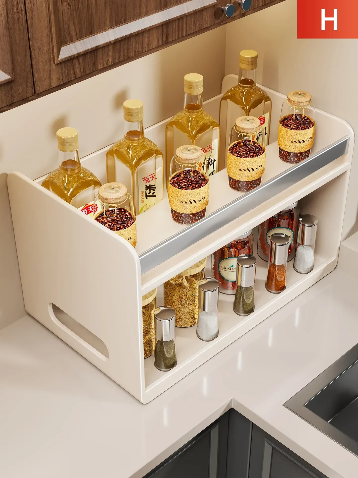 多機能調味料ラック - キッチンで油、塩、醤油、酢をスッキリ収納!美しいデザインでキッチンをおしゃれに演出し、調味料をすぐに取り出せる便利さを実現。料理の効率をアップさせる必須アイテム!