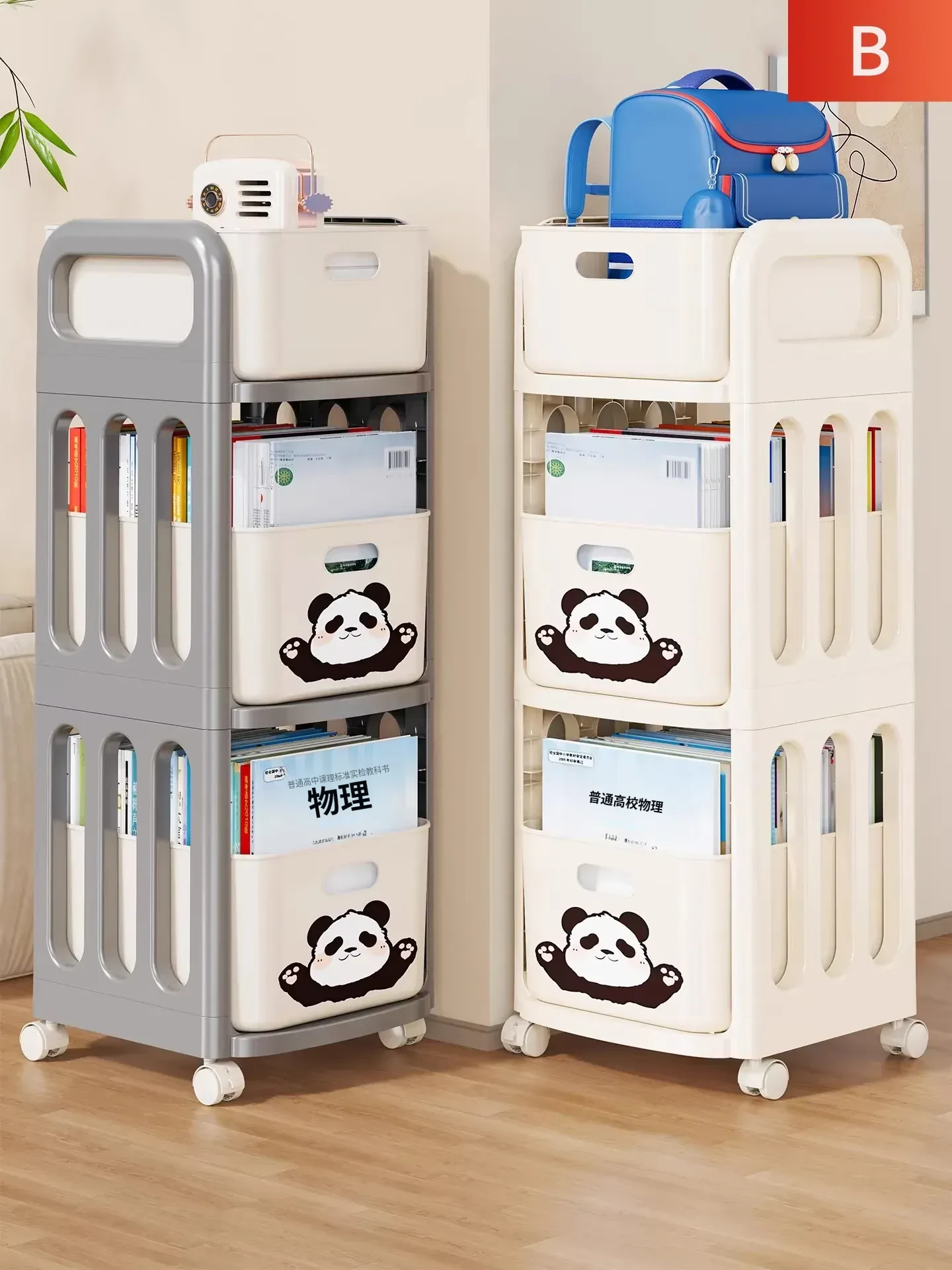 移動可能な多層書棚 - 学生教室や書斎に最適!キャスター付きで簡単に移動、収納力抜群のシンプルデザイン。あなたの学習空間をスッキリ整理!