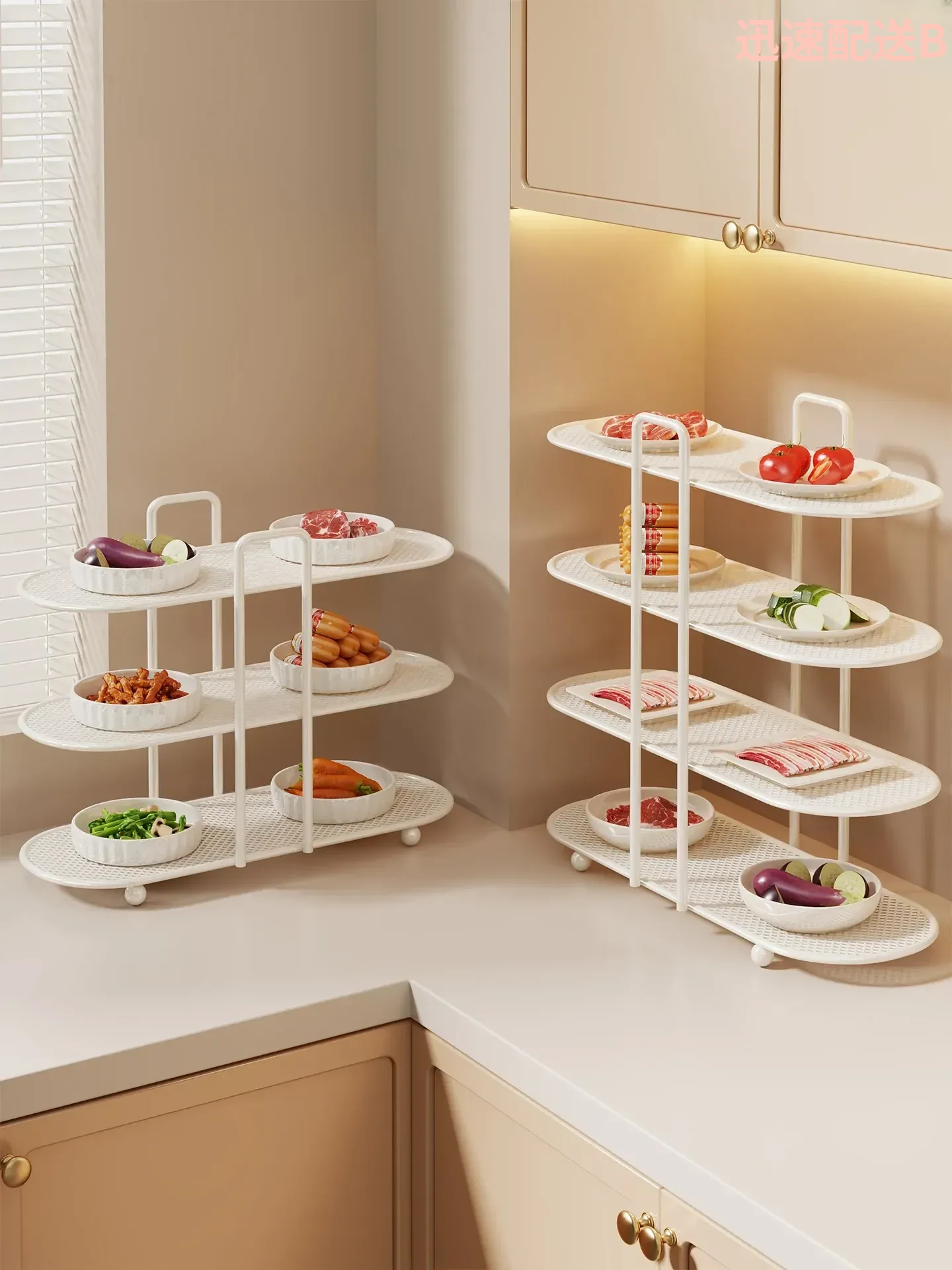 多機能キッチン収納ラック|食材や皿を整理整頓!層状デザインで台所スペースを有効活用し、すっきりとした空間を実現。家庭用に最適な調理準備トレイ!