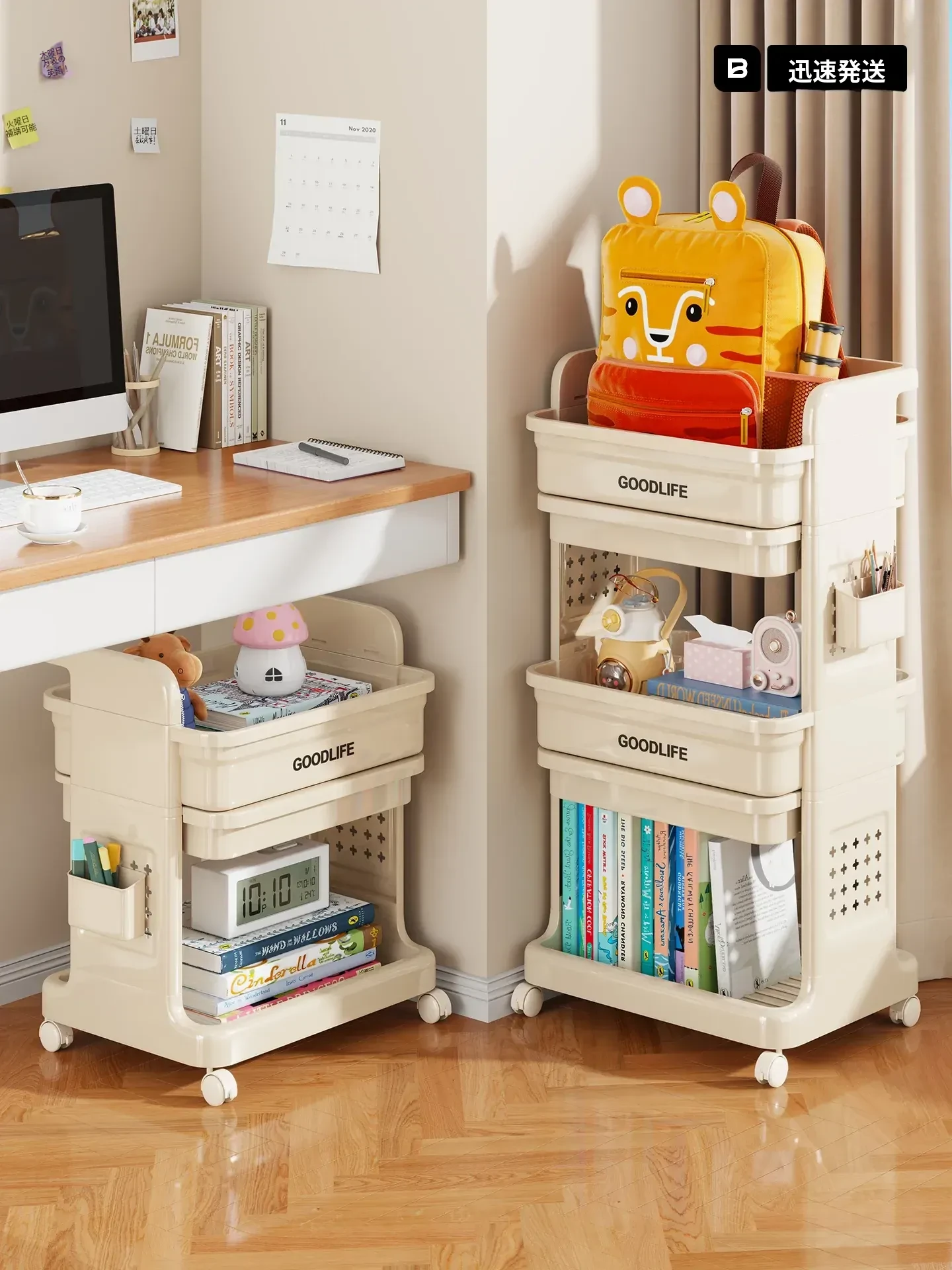 移動式ブックスタンド・収納カート|学生や家庭に最適な小物整理の必需品!お菓子や本をスッキリ収納、デスク下もすっきり片付く便利アイテム!