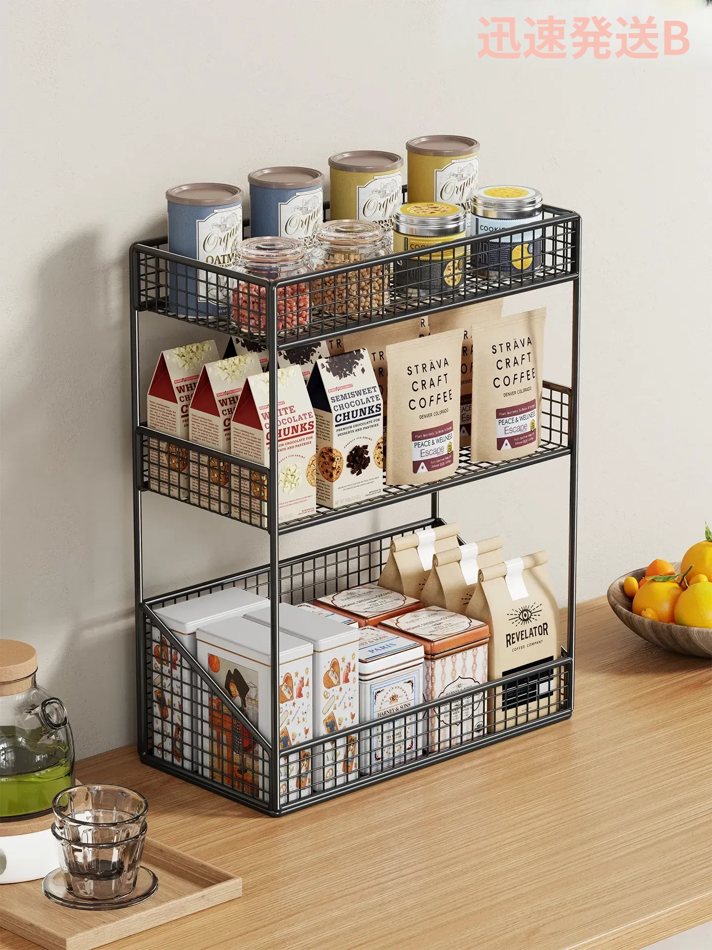 多機能デスクオーガナイザー!リビングやキッチンに最適な多層スナックラック。おしゃれなカップ&水筒スタンドとして、調味料もすっきり収納。限られたスペースを有効活用して、生活をもっと便利に!