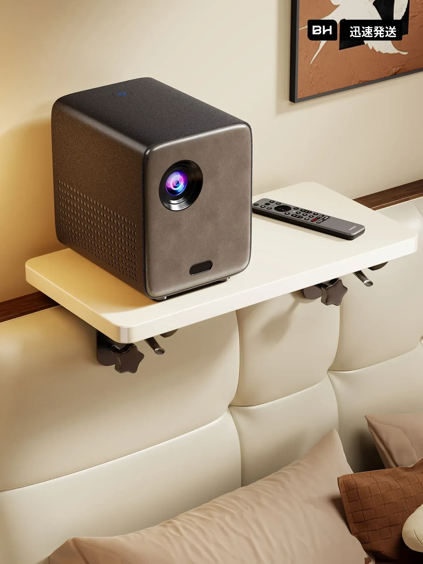穴あけ不要!折りたたみ式プロジェクターベッドサイドスタンド - 延長プレート付き、家庭用寝室やルーターの置き場所に最適な収納トレイ台!