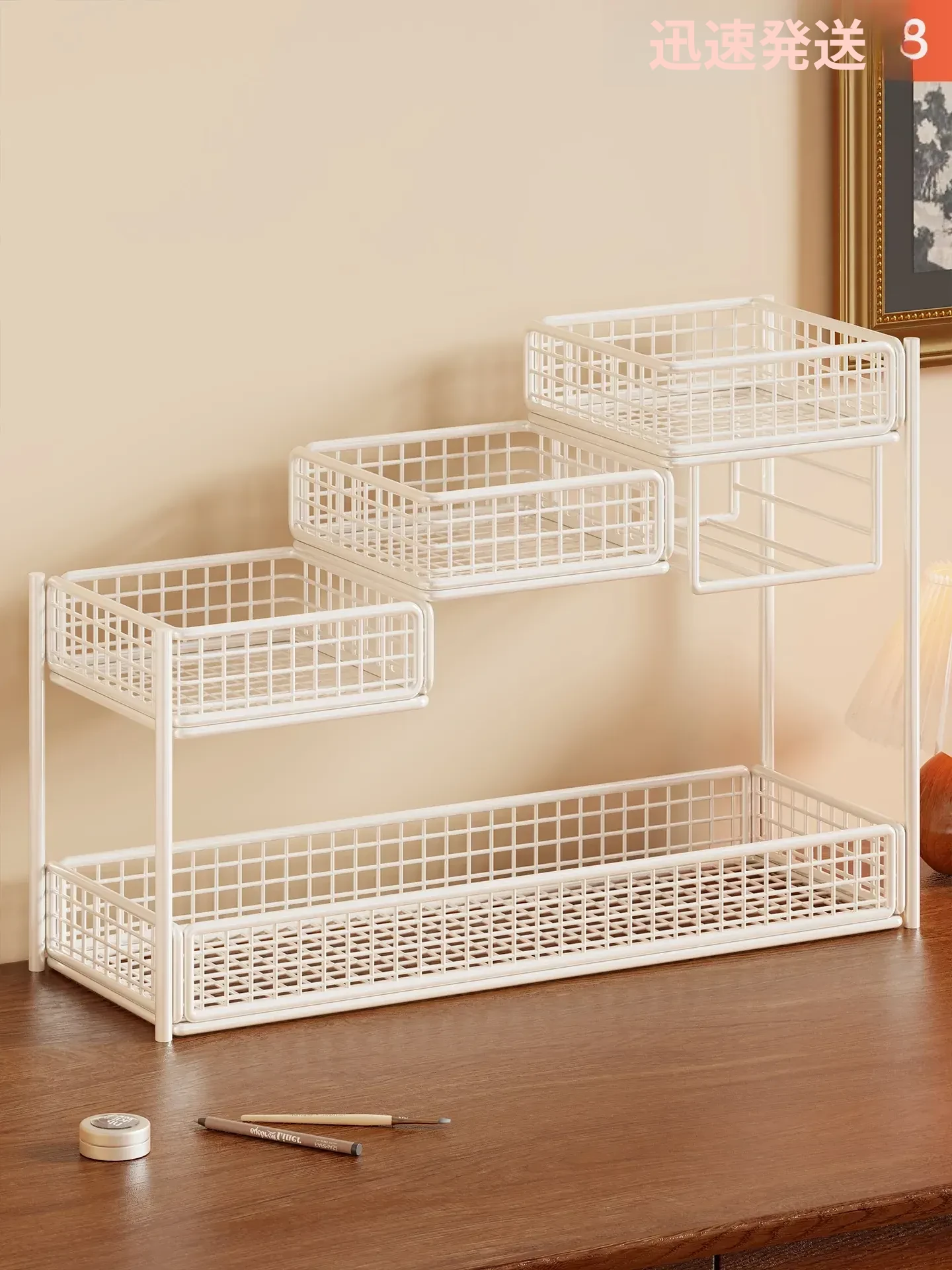 デスク用化粧品収納ラック|多層スキンケア用品整理の必需品|洗面台やトイレにぴったりなティッシュホルダー付き!あなたのメイクアップスペースをスッキリ整頓!
